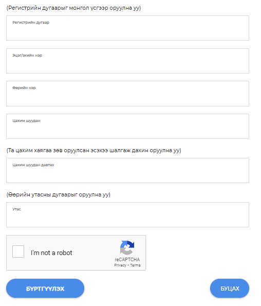 АЛХАМ-2: Иргэн татвар төлөгчөөр бүртгүүлсний дараа ЦАХИМ ТАТВАРЫН СИСТЕМ-д бүртгүүлнэ. Системд нэвтэрч бүртгэлгүй бол Бүртгүүлэх товчийг дарж хэрэглэгч бүртгүүлэх цонхонд шилжинэ.